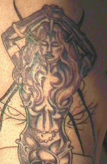Why I say in 'work in progress' is cos so far only four hours of work has been applied to the tattoo on the 10th of January 1998, & @ least another 12 or so hours will be needed to complete it.